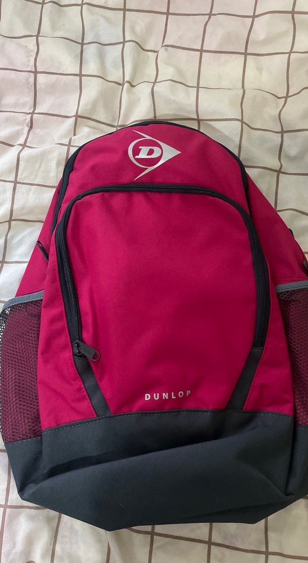 Bordo renkli, fermuarlı bölmeleri ve baskılı detayları olan Dunlop kadın spor sırt çantası, sentetik kumaştan üretilmiştir.