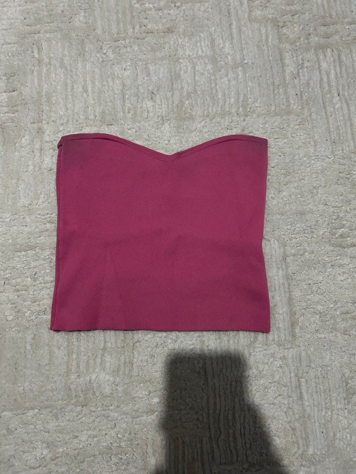 Bordo renkte, desen içermeyen, kontrkültür tarzında düz kesim bir büstiyerdir. Hafif V şekilli yaka detayı vardır.