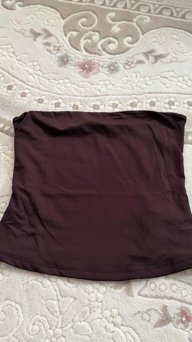 Bordo renkli, düz ve vücuda oturan göğüs korsesi midi boyda, rahat destek sağlar ve sade bir görünüm sunar.
