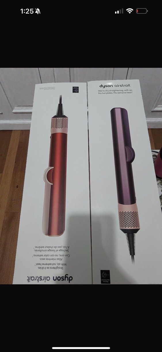 Bordo renkli Dyson Airsrtait saç düzleştirici, sıcak plaka olmadan hava ile düzleştirme yapar ve saçta nazik bir etki bırakır. Şık tasarıma sahip, yenilikçi hava akımı teknolojisi bulunur. ✨