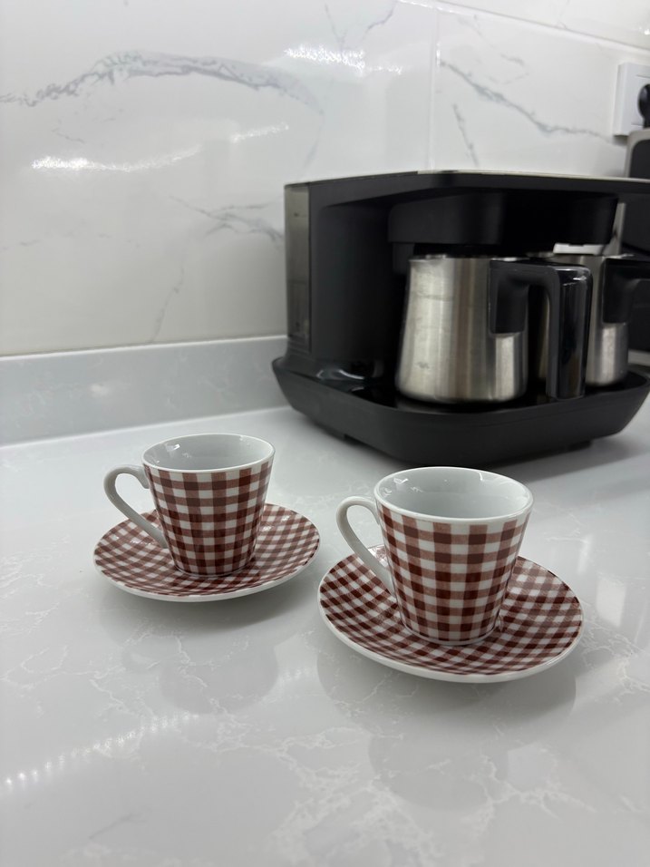 Bordo Ekose Desenli 2'li Kahve Fincanı Seti