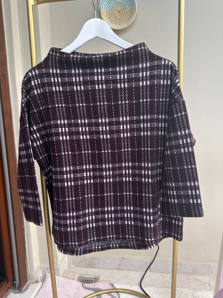 Bordo Ekose Desenli Kadın Kazak