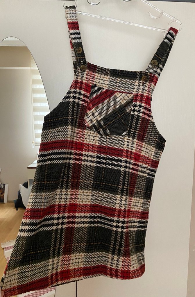 hiç giyemedim kilo aldığım için bedeni 36-38 uygundur Bordo ekose desenli, askılı ve tokalı kısa tulum. Rahat kesim ve midi boy ile günlük sokak stiline uygun.