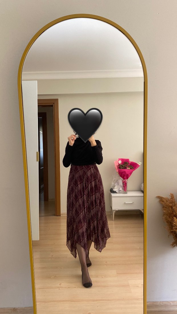 Bordo renkli, ekose desenli ve transparan detaylara sahip triko midi etek, rahat ve bol kesimlidir, romantik akşamlar için uygundur. markası belirsz