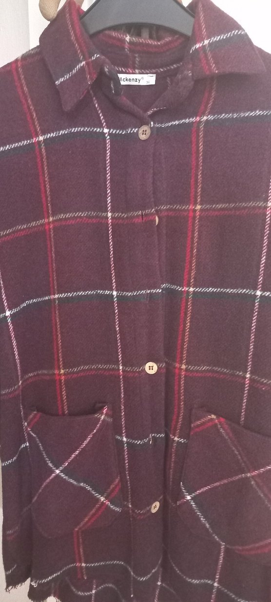 Bordo ekose desenli, düğmeli ve yumuşak kumaştan kadın gömleği. Uzun kollu, normal boyda ve rahat kesimlidir, günlük kullanıma uygundur. 65 boy koltuk arası 52