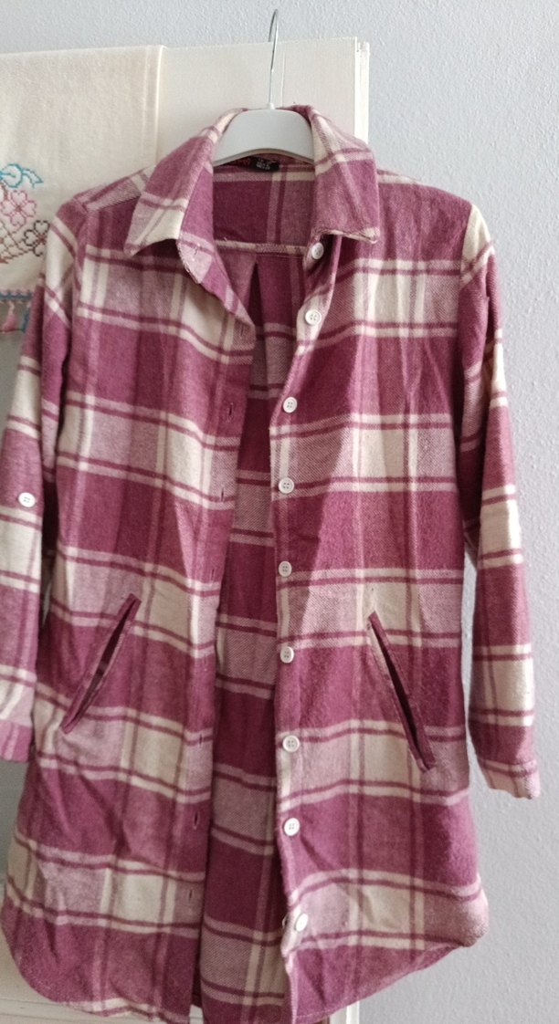 Bordo ekose desenli, düğmeli, uzun kollu ve notched yakalı kadın gömleği. Bol kesimi ve yumuşak, sıcak kumaşıyla rahat bir stil sunar.