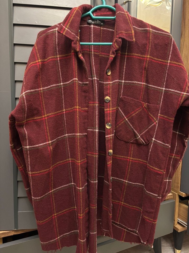 Bordo ekose desenli, düğmeli ve uzun kollu, notched lapel yakalı, midi boyda rahat kesim kadın gömleği. Günlük kullanıma uygun, yumuşak kumaştan üretilmiştir. Oduncu gömlek Pamuklu