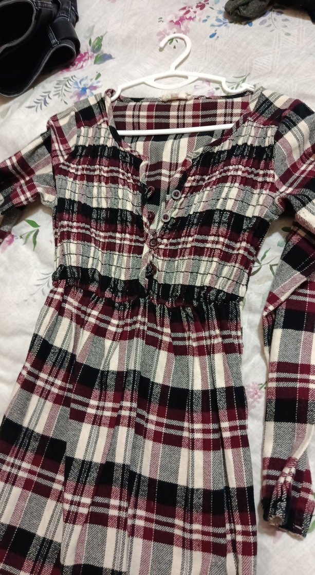 Bordo ekose desene sahip, düğmeli ve V yaka uzun kollu, bol kesim kadın gömleği. Rahat bohem tarzıyla günlük kullanıma uygundur.