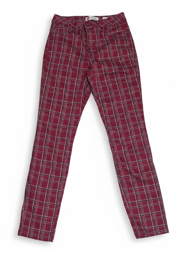 Bordo Ekose Piliseli Kız Kumaş Pantolon