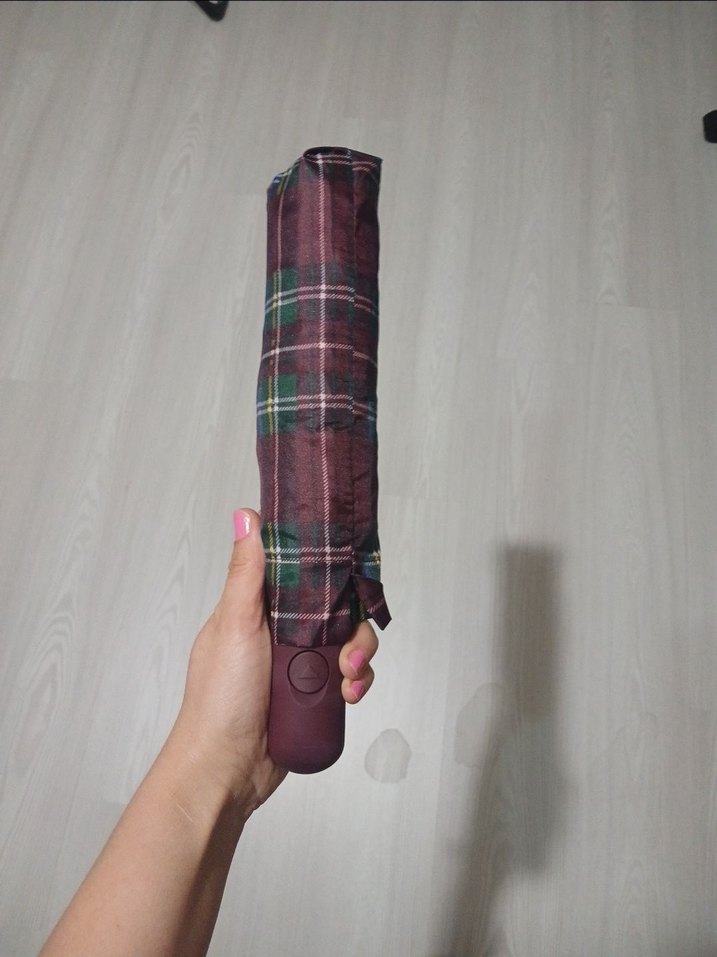 koyu bordo renginde pileli ve rahat ekose desenlidir. Taşıması kolay kompakt sapı vardır. ☂️