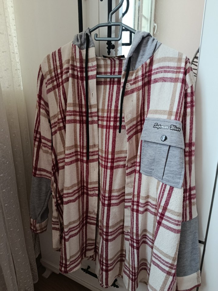 Bordo ekoseli, düğmeli ve kapüşonlu bu gömlek bol kesimdir. Uzun kollu ve yuvarlak yakalı, yumuşak dokulu kumaştan üretilmiştir. Günlük rahat kullanıma uygundur.