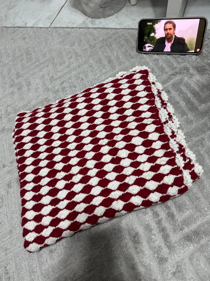Bordo ve beyaz ekoseli, örgü kumaştan yapılmış çocuk battaniyesidir. Yumuşak dokusu çocuklar için uygundur. Fiyat sorunuz