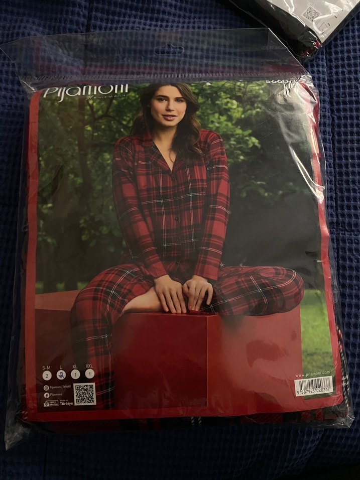 Kadınlar için bordo ekoseli, uzun kollu, midi boy, bol kesim pijama takımıdır. Rahat ve sıcak bir dokunuş sunar, günlük rahat giyim için uygundur.