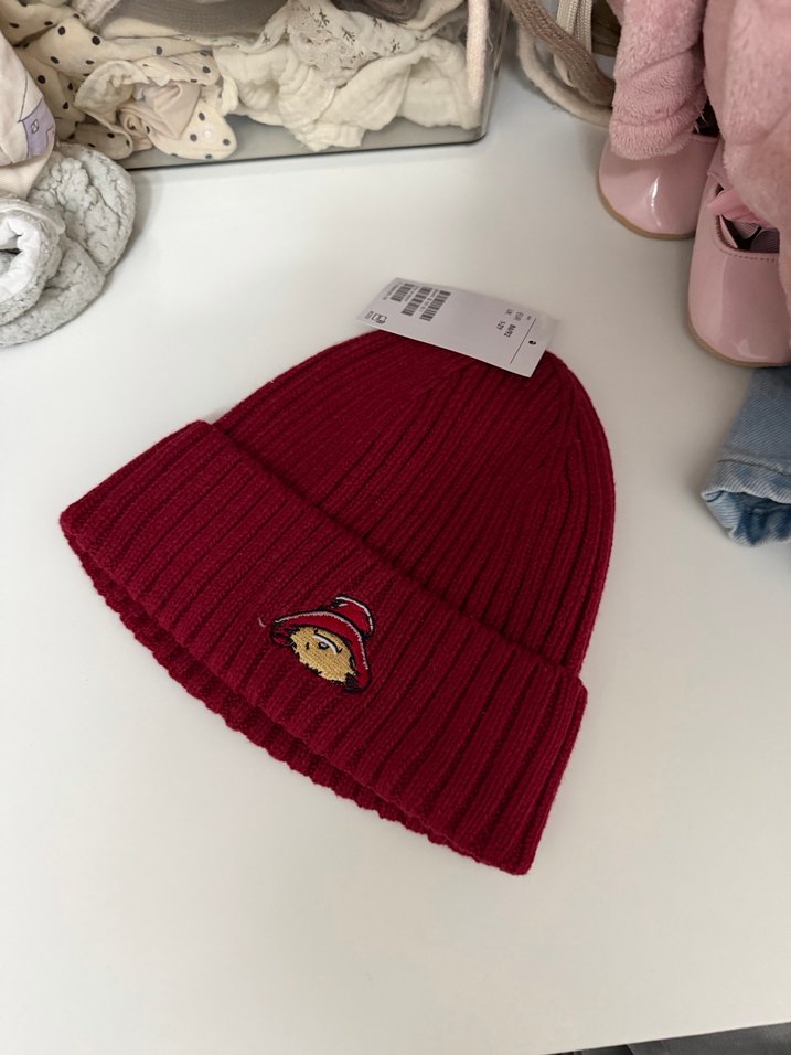 Bordo renkli, örgü yapıda ve yumuşak polar bere, küçük nakış detayıyla rahat sokak stili için uygun.