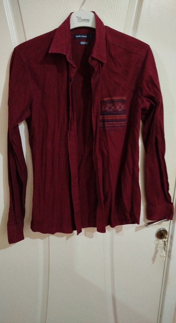 Bordo renkli, uzun kollu erkek gömleği. Notlu yaka ve düğmeli ön kısım bulunur. Cepte desenli detay vardır. Bohem tarzda, rahat kesim, günlük kullanım için uygundur.