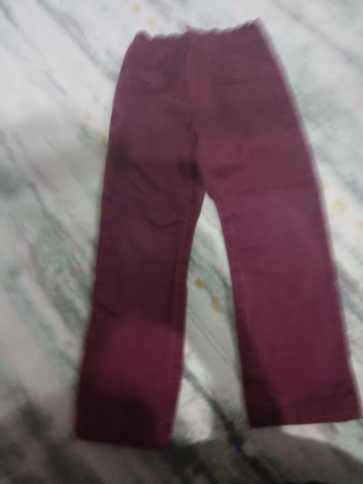 Bordo renkli, bol kesim erkek çocuk pantolonu, düğmeli ve yumuşak sentetik kumaştan, ayarlanabilir bel lastikli 3-4 yaş