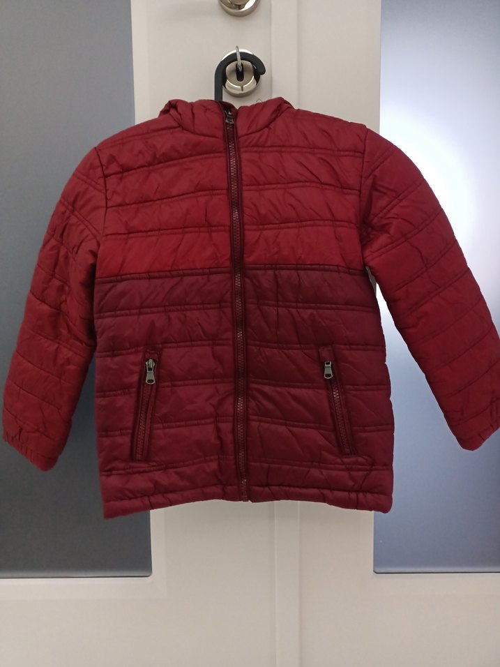 Fermuarlı ön ve cepleri olan bordo renkli, ince kesim erkek çocuk montu. Yumuşak ve sıcak kumaştan üretilmiştir, sokak stili için uygundur.