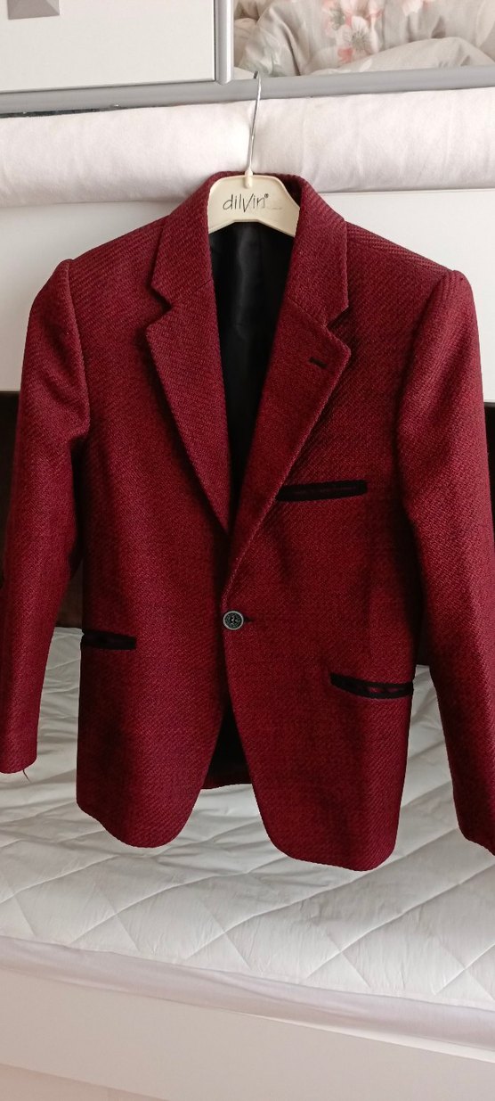Bordo renkli, klasik düğmeli erkek çocuk ceketi, regular fit ve notched lapel yakaya sahiptir. Sentetik kumaştan, desensiz ve çağdaş tarzda tasarlanmıştır. 10 yaş erkek çocuk ceketidir yanında 2 pantolon birlikte hepsinin fiyatıdır