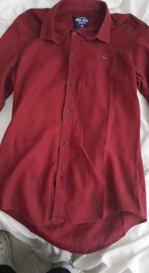 Bordo renkli, düğmeli erkek keten gömlek, yakalı ve uzun kolludur. Rahat kesimi ve midi boyu ile günlük ve sokak stiline uygundur.