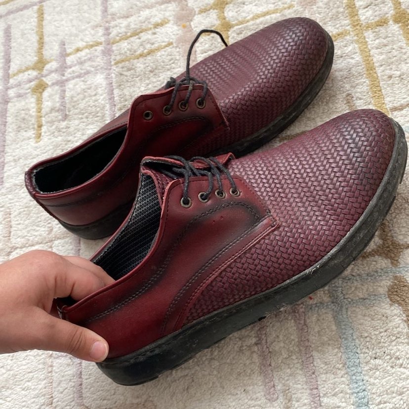 Bordo renkte, düğmeli bağcıklı, desen içermeyen kauçuk malzemeden yapılmış erkek klasik ayakkabısı, günlük kullanım ve sokak stiline uygundur.