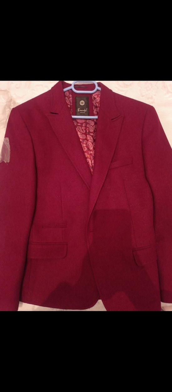 Bordo renkli erkek ceket, klasik kesim ve yaka detayına sahiptir. Düğmeli, uzun kollu ve normal midi boyda olup ofis kullanımı için uygundur. Modern klasik tarzda, desensizdir.