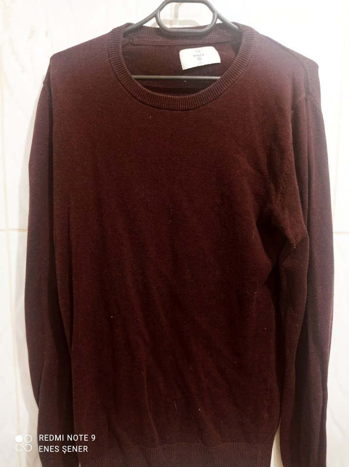 Bordo renkli, uzun kollu, yuvarlak yakalı erkek örgü yün kazak. Rahat kesimi ve sade tasarımıyla günlük sokak stiline uygundur.