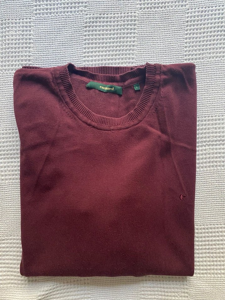 Bordo renkte, pamuklu ve örme dokulu, bisiklet yaka, uzun kollu, bol kesim erkek kazak. Günlük ve rahat sokak stiline uygundur.