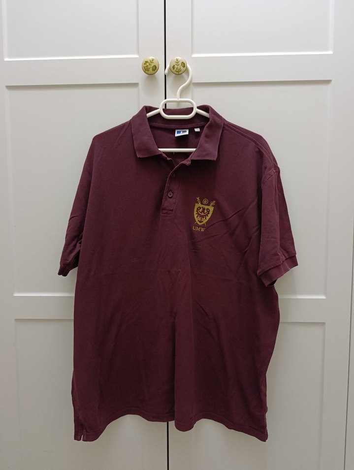 Bordo renkli, düğmeli yaka ve kısa kollu erkek polo tişört. Gevşek kesim ve parlak yüzeye sahip, günlük rahat kullanım için uygun.