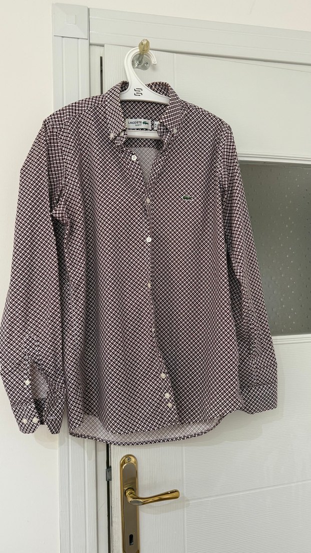Bordo renkli, regular fit, uzun kollu, düğmeli erkek gömleği. Midi boyda ve sentetik kumaştan, günlük sokak tarzına uygun.