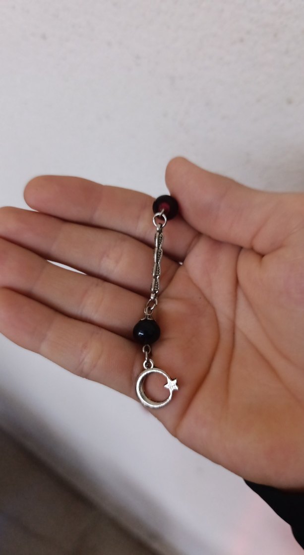 Bordo renkte, erkek tesbih. Ay ve yıldız detaylı, gotik altkültür için uygun.