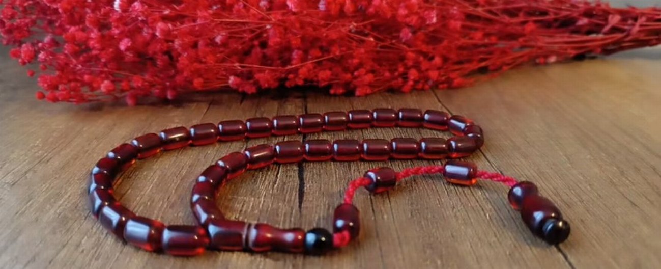 Koyu bordo renkte, geleneksel tarzda erkek tesbih boncukları, bohem havasıyla dikkat çekiyor. sıkma tespihdir
