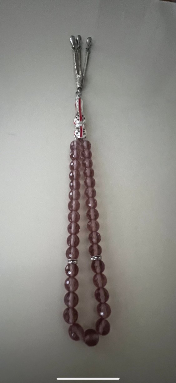 Bordo renkli boncuklara ve gri detaylara sahip, minimalist ve klasik tarzda erkek tesbih.