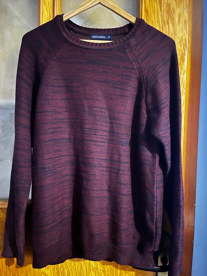 Bordo renkli, yün kumaştan örülmüş, uzun kollu ve yuvarlak yakalı erkek kazak. Rahat kesimiyle gündelik kullanıma uygundur.
