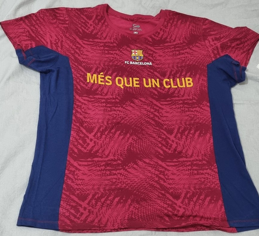 Bordo renkli, uzun kollu, bisiklet yaka erkek tişörtü, sentetik örme kumaştan olup FC Barcelona logosu ve "MÉS QUE UN CLUB" yazısı ile sportif ve sokak tarzı sunar.