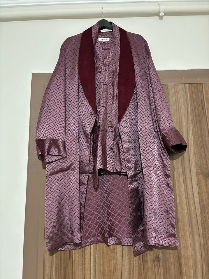 Bordo erkek Uzun Yılan Desenli Sabahlık