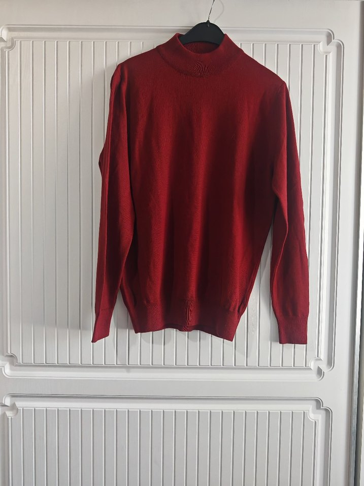 Bordo erkek kazak, yuvarlak yaka ve uzun kolludur. Yumuşak yünden, bol kesimle örülmüştür. Günlük sokak stiline uygundur.