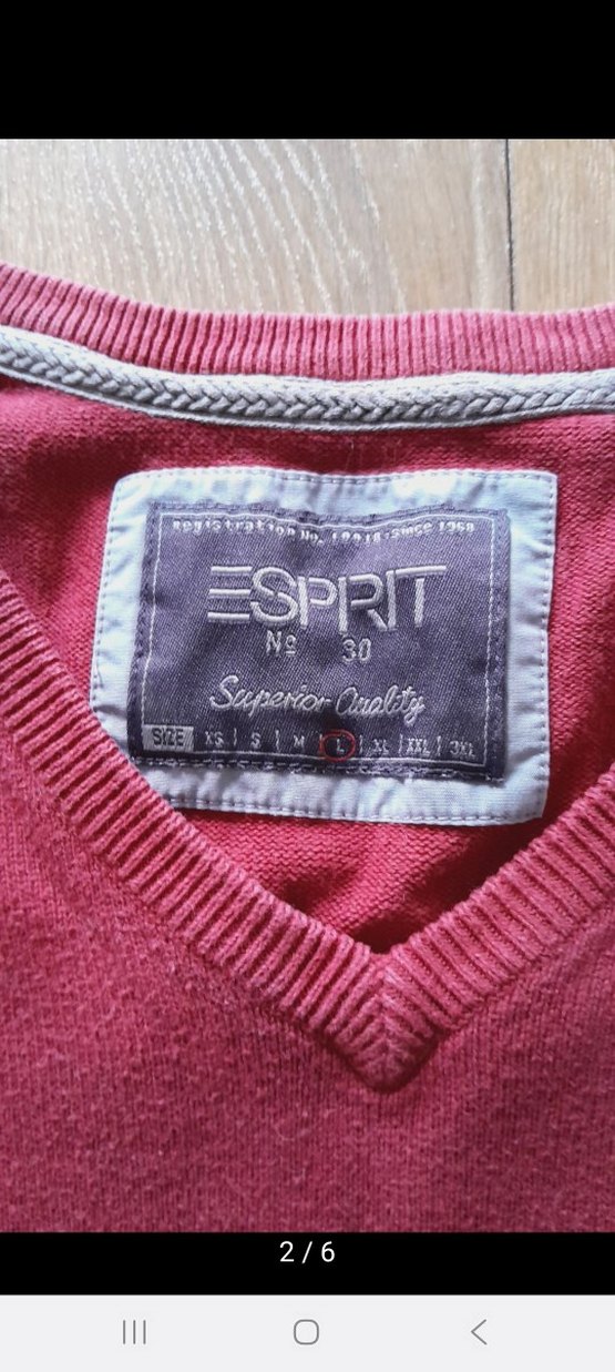 Bordo renkte Esprit erkek yaka rozeti, 'Esprit No 30' ve üstün kalite yazısı ile trend ve spor stil için uygundur.