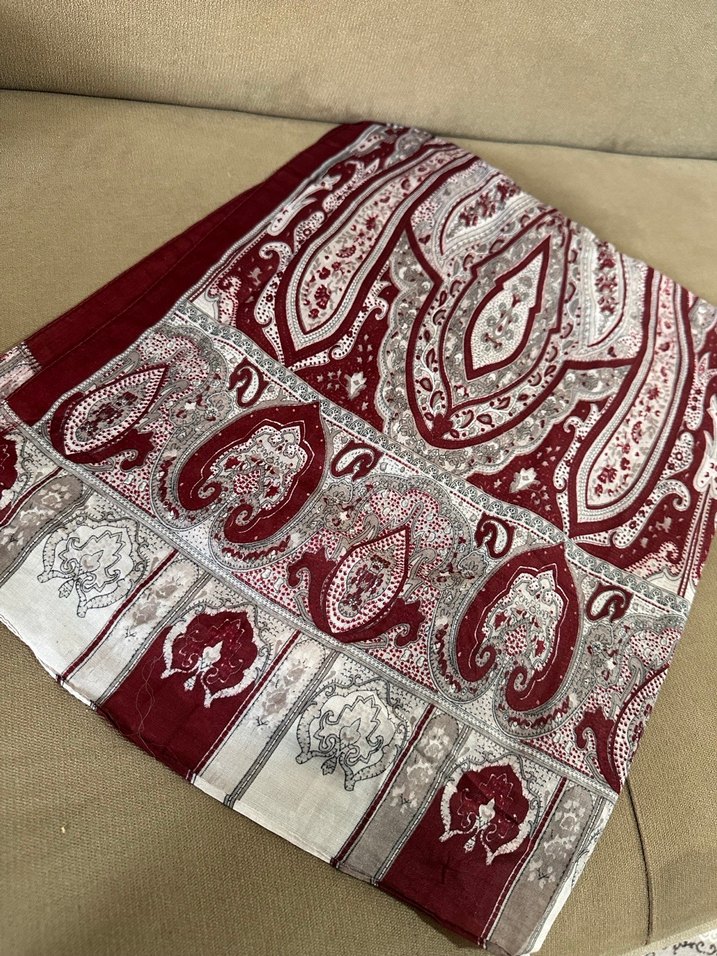 Bordo ve gri tonlarda, ipek dokulu, drapeli kadın şalı. Bohem ve retro tarzını yansıtan detaylı desenlere sahip.