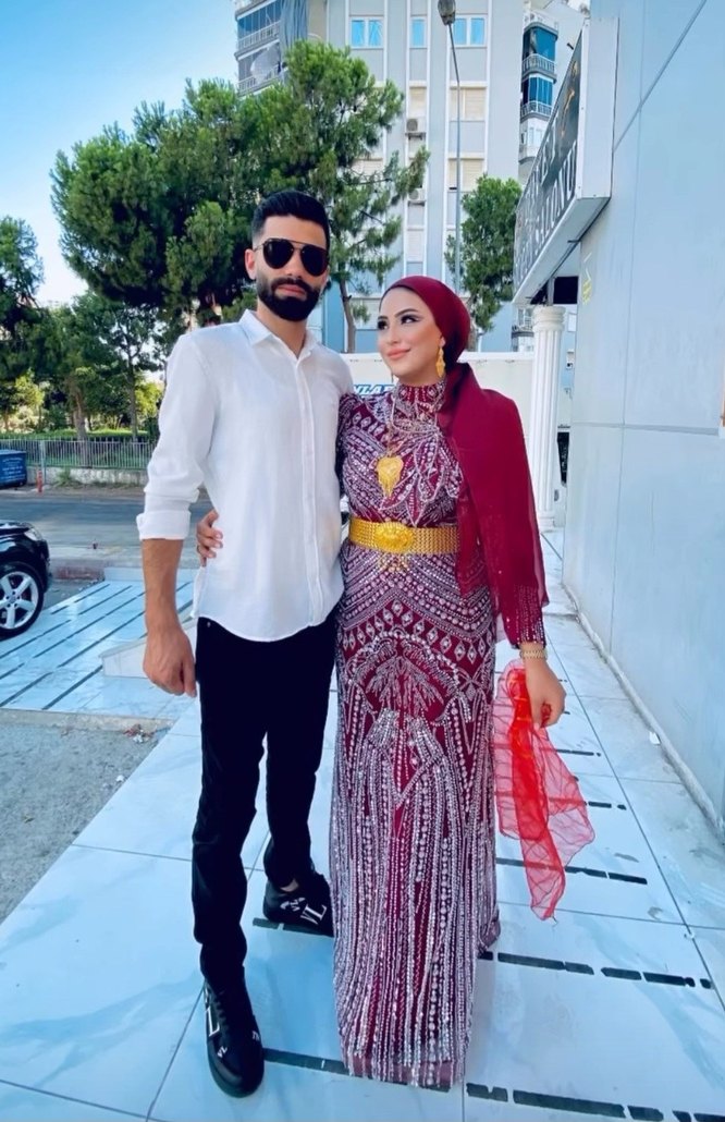 Bordo renkli, etnik desenli, uzun kollu ve tekne yaka drapeli elbise, modest ve regular kalıpla düğünler için uygun.