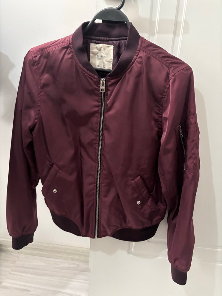 Fermuarlı, uzun kollu, bordo kadın ceket. Notlu yaka ve midi boyda, düz desenli, sentetik kumaştan, rahat sokak stili için uygun. Kusuru yok.