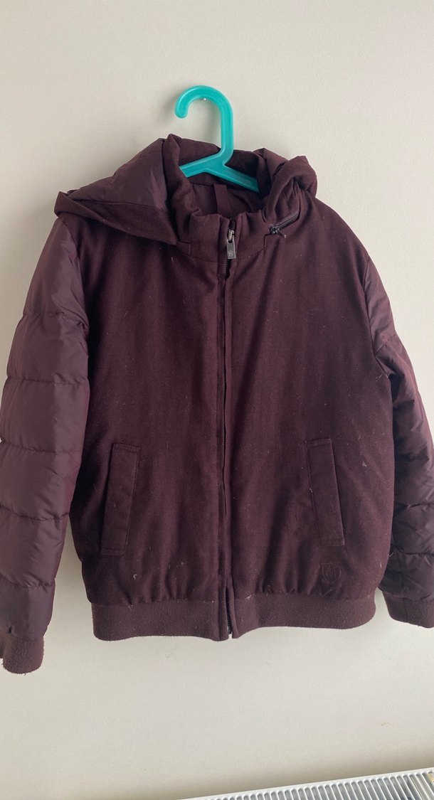 Bordo renkli, fermuarlı ve yüksek yakalı bu erkek çocuk ceket, uzun kollu ve rahat kesimdir. Yumuşak ve sıcak kumaşıyla günlük kullanım için uygundur. Kaz tüyü mont