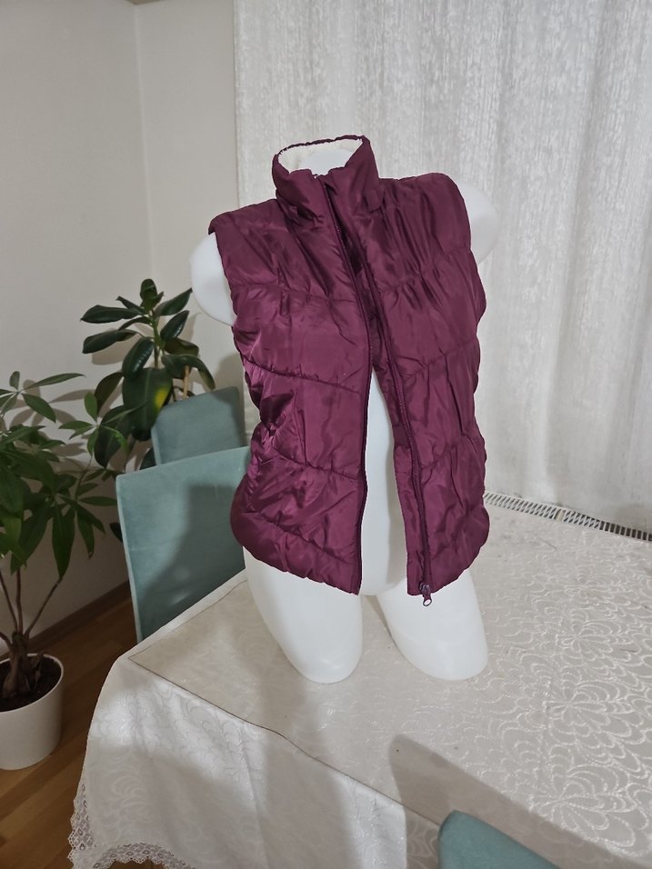 Bordo renkli, fermuarlı, yüksek yakalı çocuk yelek. Sentetik kumaştan üretilmiş, rahat ve şık bir sokak stili parçası.Kol altında sökülme var.Marka temsili