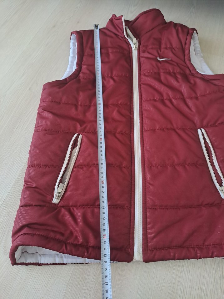 Fermuarlı cepli, kollu olmayan bordo kadın yelek. Normal boyda, yumuşak ve sıcak kumaştan, günlük sokak tarzına uygun.