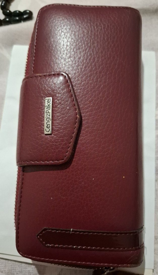 Bordo Fermuarlı Kadın Deri Cüzdan
