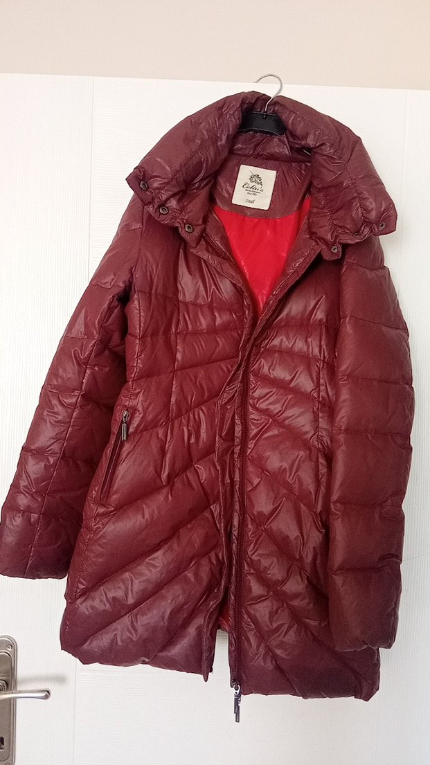 Bordo renkli, fermuarlı, normal midi boyda kadın kışlık mont. Sentetik kumaştan, notched lapel yakalı, uzun kollu ve fit kesim. Rahat ve şık sokak stili için uygun kaz tüyü resimde görüldüğü gibi ufak bir kaç işlem var fermuar sağlam sadece gösterdiğim yerdeki demiri düşmüş oda fermuar çıkmadan takılabiliyor