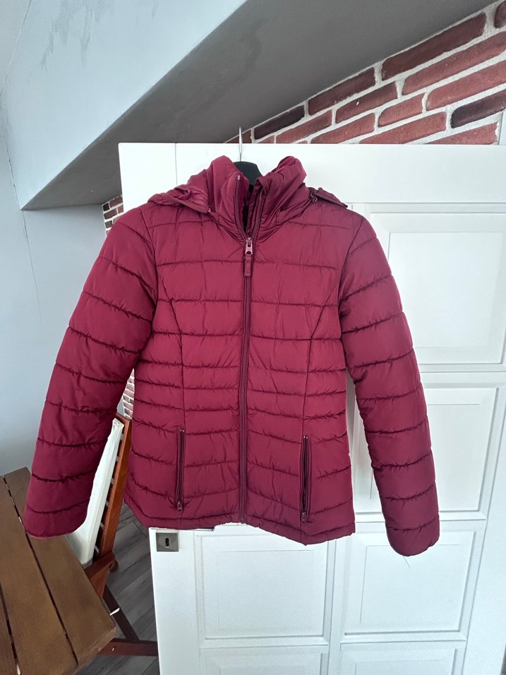Bordo renkli, fermuarlı ve uzun kollu kadın kışlık mont. Notlu yaka ve sıcak tutan yumuşak kumaş ile günlük kullanıma uygun rahat kesim.