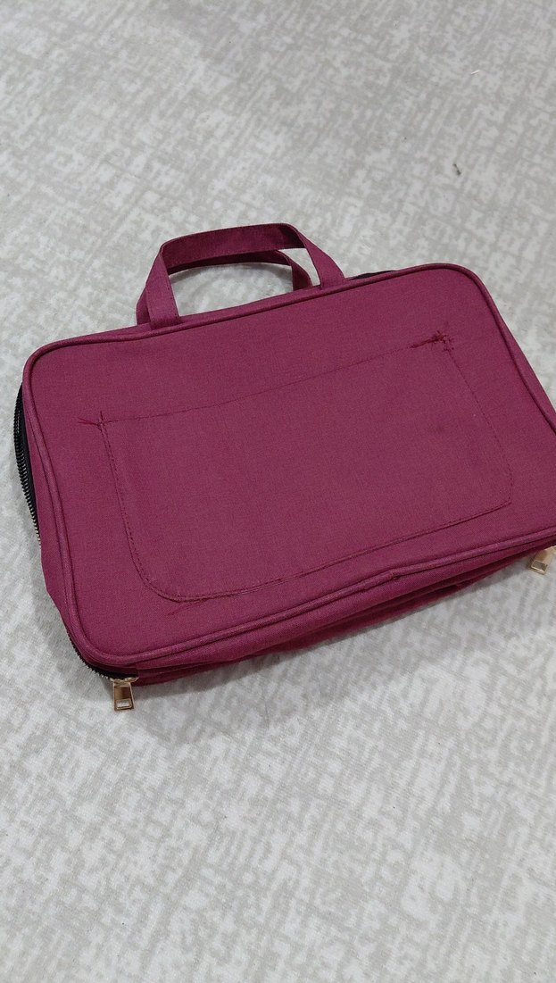 Yumuşak ve sıcak kumaştan bordo renkli, fermuarlı kapamalı ve ön cepli modern kadın kozmetik çantası. Minimalist ve günlük kullanıma uygun.