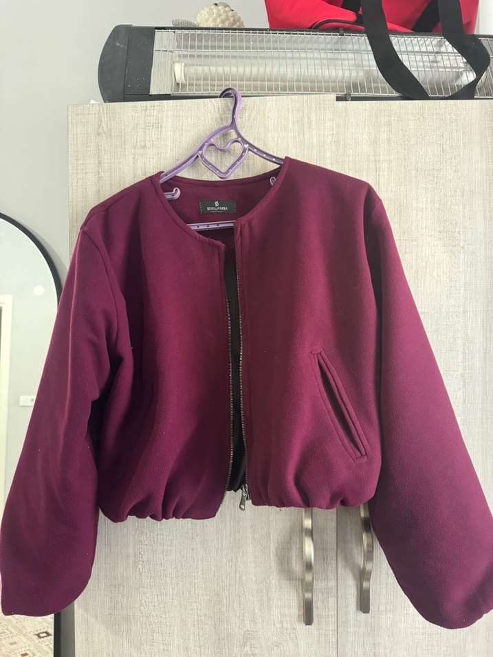 Bordo Fermuarlı Kadın zara model bomber ceket