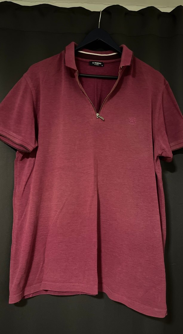 Nefes alabilen keten kumaştan, fermuarlı önü ve kısa kollu, loose fit kesimiyle bordo renk erkek polo tişört. Günlük sokak stili için uygundur.