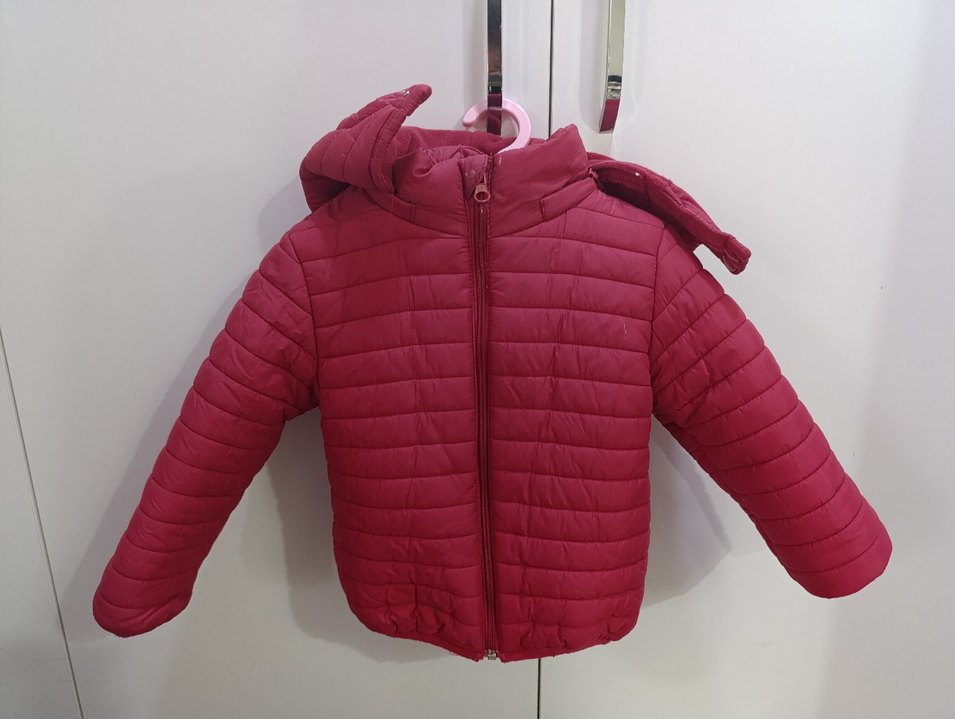 Bordo renkli, fermuarlı ve yakası kesik detaylı kız çocuk montu, yumuşak ve sıcak kumaştan, sokak tarzı için uygun.